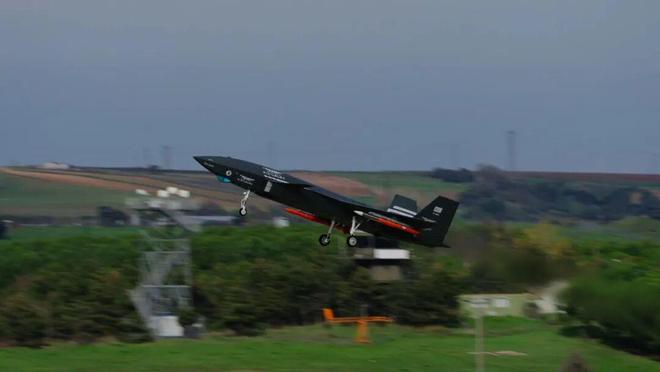 红苹果无人机是土耳其国家技术倡议框架下的重要成果,重点发展隐身性能与多任务能力。红苹果无人战斗机翼展10米,机长14.7米,机高3.3米,安装一台土耳其-乌克兰BSS合资企业生产的乌克兰设计AI-25TLT涡轮风扇发动机,推力1.72吨/1687千牛。该机最大起飞重量6吨,载弹量1.5吨,最大速度900千米/时,巡航速度740千米/时(0.6-0.9M),续航范围930千米,续航时间5小时,升限12000米,巡航高度10668米。