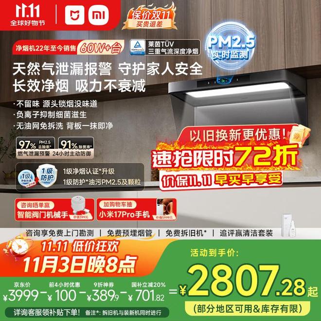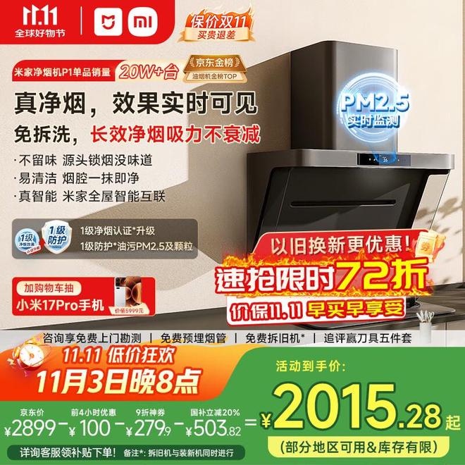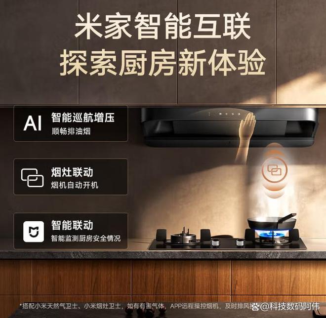 如果你家是封闭式小厨房,预算又有限,那这款就是你的菜。它采用了顶吸和侧吸结合的结构,吸力覆盖范围广,哪怕用很高的蒸锅也不怕。它还有个AI增压巡航功能,能自动感知烟道的压力,如果发现排烟不畅就会自动加大马力,确保油烟能顺利排出去。连接米家APP还能远程控制和开启自清洁,性价比很高。