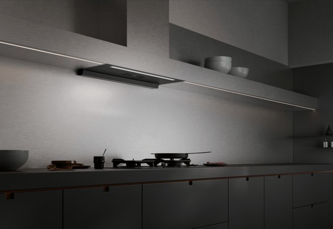 航空级折叠结构是实现 “隐身” 的关键技术支撑,采用航空工业常用的死点原理设计,类比飞机起落架的可靠结构,确保升降机构经过 5 万次寿命测试仍能稳定运行。配合超薄轻量科技,产品相较传统机型减重 60%、深度减少 40%,再加上毫米级精度霍尔传感器控制的自由悬停功能,可实现升降行程内任意高度 0.1 毫米级精准定位,让烟机在不使用时完全嵌入吊柜,实现 “0 缝全隐” 的动态美学效果。这种设计不仅解决了厨房层高不足、橱柜设计被割裂的痛点,更释放了 30% 的台面空间,让厨房告别设备堆砌的杂乱感。