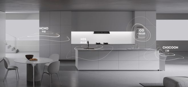 更具革命性的是 24 小时哨兵监控功能,能主动识别燃气、甲醛等 9 种有害气体,无论是否烹饪都能实时守护室内空气安全,彻底解决了开放式厨房的异味困扰和安全隐患。